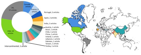Geographical distribution of articles (country names with number of articles).