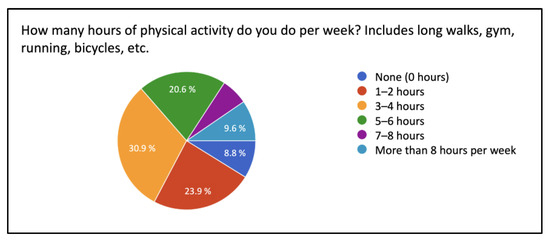 - How many hours physical activity each week? (include walking, riding, gym, sports)