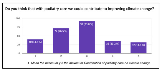 - Spanish podiatrists are unaware of the concept of “green podiatry”, although they express significant concern about climate change. However, they seem to have some knowledge about carbon footprints. Almost half of them are unsure if podiatry plays an important role in climate change.