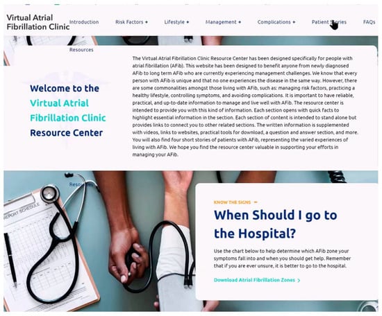 Rush, K.L.; Burton, L.; Seaton, C.L.; Loewen, P.; O’Connor, B.P.; Corman, K.; Phillips, R.; Moroz, L.; Andrade, J.G. Usability and Feasibility Testing of an Atrial Fibrillation Educational Website with Patients Referred to an Atrial Fibrillation Specialty Clinic. Int. J. Environ. Res. Public Health 2023, 20, 6792. https://doi.org/10.3390/ijerph20186792