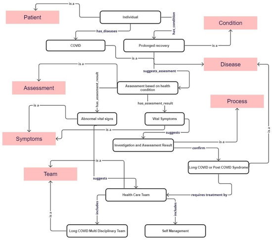 We provided a comprehensive description of the classes (Table 1); mainly decision points involved in diagnosing and managing long COVID. The ontology models various concepts and captures the decision points, which are essential for making informed decisions regarding the management and diagnosis of long COVID.
