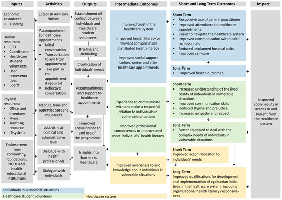 The proposed pathways, from accompanying individuals to healthcare appointments to increased social equity in healthcare, finds support in theoretical constructs within the health literacy framework. Health literacy is defined as “the combination of personal competencies and situational resources needed for people to access, understand, appraise and use information and services to make decisions about health” [51]. Evidence shows that health literacy mediates the relationship between socioeconomic position and health at the individual level and social inequity in health at the system level [52]. Hence, efforts that increases health literacy at the individual level or reduce the consequences of low health literacy can contribute to reduced inequity in health [51].