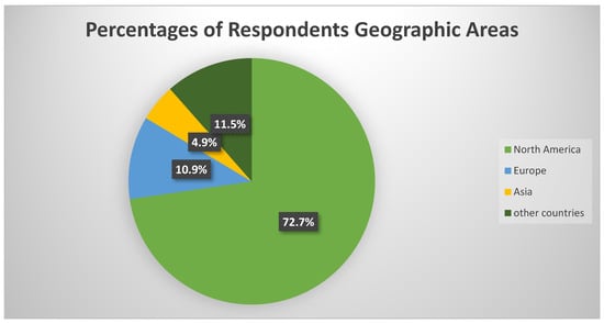 This study focused on 897 responses (Figure 1) Overall, the mean age of respondents was 22 years, and 10.3% of the participants identified as women. There were 897 replies from North America (72.7%), Europe (10.9%), Asia (4.9%), and other countries (11.5%). Table 1 presents the demographics.