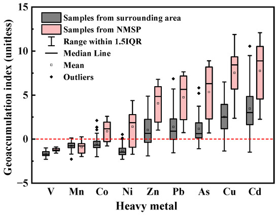 - Huang, X.P.; Fu, Q.; Wang, J.H. Distribution and Pollution Assessment by Index of Geoaccumulation about the Heavy Metals in Sediments of Dexing Copper Mine Rainwater Network. In IOP Conference Series: Earth and Environmental Science; IOP Publishing: Bristol, UK, 2020; Volume 455, p. 012186. [Google Scholar]