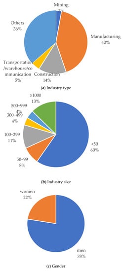 In the logistic regression analyses, the larger odds ratios for industry size in mining may be attributed to the characteristics of the hazardous mining industry compared to other industries. In other words, the larger odds ratio indicates that mining is more hazardous than other industries. The larger odds ratio for men working in mining and construction industries may be because more men were employed in mining and construction than women (in 2019, men: 88.9% and 86.0% of workers in mining and construction, respectively) [], and men might be generally exposed to more stressful tasks than women.