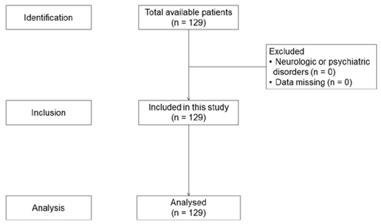Data from 129 patients were analyzed. None of the patients were excluded (Figure 1). The demographic data of all patients are presented in Table 2.