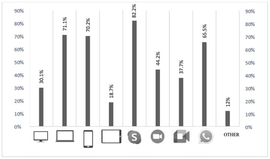 Participants were asked to focus on the tools used to deliver online interventions. Descriptive statistics of the hardware and software used to deliver online interventions are reported in Figure 1.