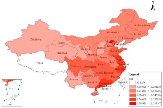 Average carbon emission efficiency (ACEE) in different Chinese provinces from 2016 to 2019 (Lin, G. [7]).