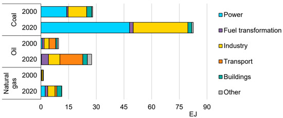 - Coal-fired power plants CCUS: Coal-fired power plants are the main consumers of coal in China. In 2020, CO2 emissions from coal-fired power plants accounted for more than 30% of the total carbon emissions, constituting the largest industrial fixed point source of CO2 emissions in China. Coal-fired power plants that apply CCUS can reduce their carbon emissions by 90%, thus making coal-fired power generation a relatively low-carbon power generation technology. However, this technology, both in China and abroad, is still in the stage of industrial demonstration. The scale of domestic coal-fired power plant flue gas CCUS demonstration projects is small overall, and no industrial operation precedent exists for large-scale (scale ≥ 1 million tons/year) demonstration projects. Only two projects have been implemented abroad: the Canadian Boundary Dam Million Tons CO2 CCS Project and the American Petra Nova 1.6 Million Tons CCS Project. The technical CCUS process of coal-fired power plants includes many technical links such as flue gas CO2 capture, transportation, use, and storage. At present, progress has been achieved in many fields of technology research and development and in engineering application explorations, and CCUS is expected to achieve commercial-scale deployment in the near future. Research is still required on methods of CO2 storage capacity evaluation and site selection exploration, source–sink matching optimization of geological storage, CO2 injectability, storage mechanisms, storage stability and safety, reservoir fluids (CO2, oil, gas, water, etc.). The effectiveness, safety, economic theory, and technology of CCUS, including the percolation and physical and chemical reaction mechanisms, have rapidly developed. The requirements for the commercial deployment of efficient CO2 geological storage technology, efficient oil and gas displacement technology, geological storage safety assessment and monitoring, and early warnings have been preliminarily met. CCUS for coal-fired power plants in China started relatively late, and the geological conditions of CO2 storage are relatively complex, so its technology research and development and demonstration projects are relatively lagging [37,38].