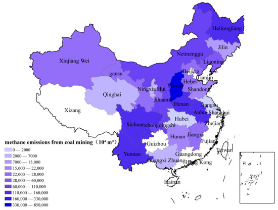 CH4 emissions of coal mining industry in various provinces (Zhu, A. 2022 [28]).