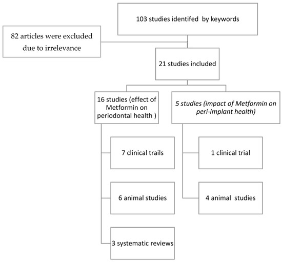 The keywords used in the electronic search were ‘metformin’, ‘diabetes’, ‘periodontitis’, ‘implant’, and ‘peri-implantitis’ via the Medline (PubMed) and Google Scholar databases for relevant articles.