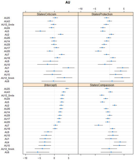 Frequency of Action Units—Differences Between States. Note. Intercept—baseline, StatesCompassion—self-compassion, StatesCriticism—self-criticism, StatesProtection—self-protection.