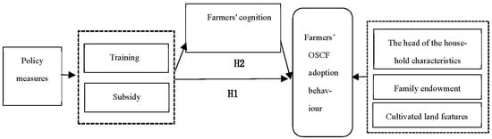 In the process of promoting policies related to OSCF, the government has guided the operating agents in various ways. First, strengthening the training related to fertilizer application to guide farmers to apply fertilizer in a rational and scientific manner. Second, using the tools of the organic fertilizer subsidy policy to reduce the cost of organic fertilizer application and encourage farmers to apply more organic fertilizer. Third, establishing experimental demonstration bases to motivate neighbouring farmers to adopt new technologies and methods. Training can strengthen farmers’ cognition concerning organic fertilizer use, which affects their judgment of the expected net benefits, and the number of training sessions received has a significant positive effect on ecological production behaviour. Organic fertilizer subsidies can reduce farmers’ expected costs of organic fertilizer use and increase their expected net benefits. The policy of agricultural technology subsidy can promote farmers’ adoption behaviour of environmentally friendly and resource-saving technologies. Organic fertilizer subsidy has a significant positive effect on fruit farmers’ behaviour relating to organic fertilizer use [22], and government policies on organic fertilizer subsidy effectively motivate fruit farmers to use organic fertilizer. Therefore, two policy incentives of training and organic fertilizer subsidy are beneficial to farmers’ organic fertilizer application behaviour. Hence, we provide Hypothesis 1 as follows: