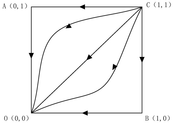 As shown in Figure 2, when the initial value is located in the ACBD region, the system converges to C (1,1). The cooperative intention of residents and enterprises will evolve into the “cooperation” strategy. When the initial value is located in the ADBO region, the system converges to O (0,0). The cooperation intention of residents and enterprises will evolve into the “non-cooperation” strategy.