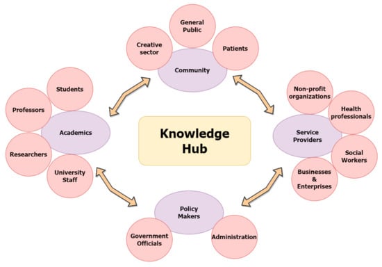 Stakeholders collaborating in knowledge hubs.