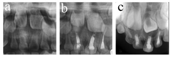 The participants were children diagnosed with S-ECC without systemic illness who underwent DGA in the Department of Pediatric Dentistry, Stomatology Hospital of Xi’an Jiaotong University from 1 August 2014 to 31 December 2019. The participants’ medical records should be complete, and their follow-up period should last at least six months. Radiographs of the tooth under treatment before the operation or within two weeks after the treatment, together with at least one radiograph in the follow-up period, were needed.