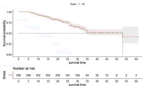 Survival curve of primary anterior teeth (n = 590).