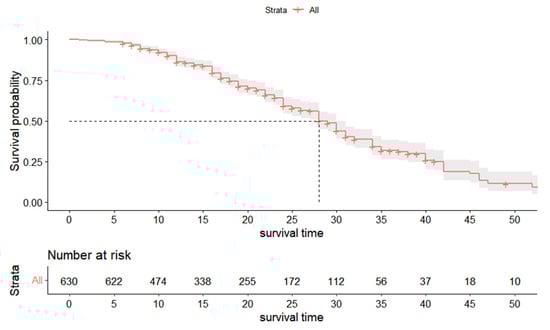Survival curve of primary molars (n = 630).