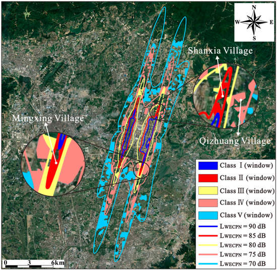 - Zhang, M.; Tian, T.; Cheng, S. Research on Sound Controlled Classification in Environmental Planning—A Case Study of Longjia Airport in Changchun City. Environ. Sci. Manag. 2016, 41, 31–36. [Google Scholar]