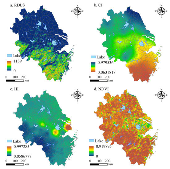 | Meteorological station data | Vector | 2000–2020 | Cumulative annual average of meteorological data such as temperature, relative humidity and precipitation | http://data.cma.cn/, accessed on 7 September 2022. | CI, HI |