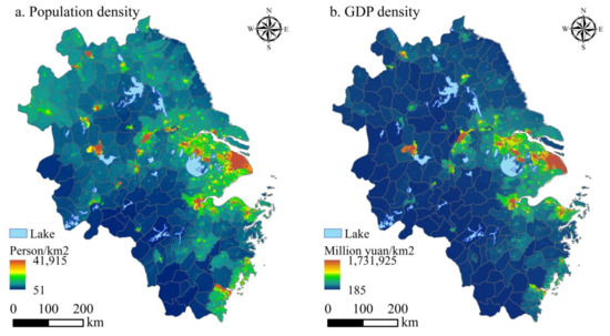 | Raster | 2019 | The dataset for population and GDP distribution with 1 km spatial resolution | https://www.resdc.cn/, accessed on 12 October 2022. |