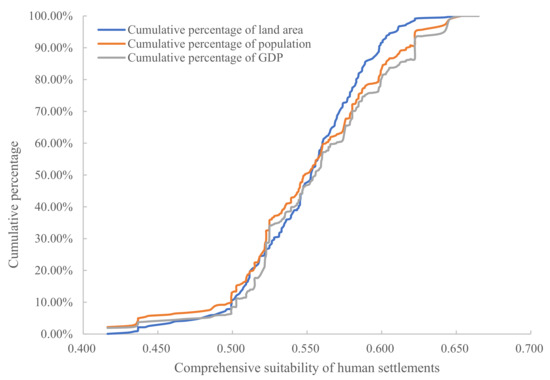3.2. Spatial Differentiation Characteristics of the Suitability Level of Human Settlements