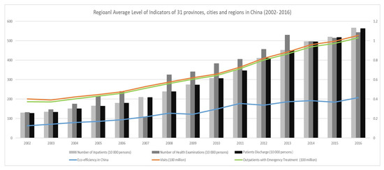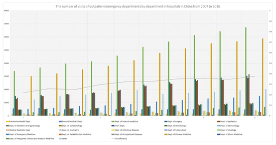 The following supporting information can be downloaded at https://www.mdpi.com/article/10.3390/ijerph20021381/s1. Table S1: main variables of the SBM to calculate the regional eco-efficiency; Figure S1: the number of visits of outpatient emergency departments by sub-department in hospitals in China; and Figure S2: the number of visits of outpatient emergency departments by sub-department in hospitals in China.