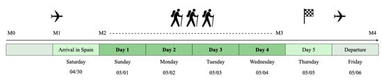 Meuffels, F.M.; Kempe, H.-P.; Becker, U.; Kornmann, M.; Kress, S.; Kreutz, T.; Brinkmann, C. From Zero to Hero: Type 2 Diabetes Mellitus Patients Hike on the Way of St. James—A Feasibility Study with Analyses of Patients’ Quality of Life, Diabetes Distress and Glucose Profile. Int. J. Environ. Res. Public Health 2023, 20, 1417. https://doi.org/10.3390/ijerph20021417