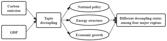 21]. At the national level, energy intensity and the level of economic activity are the most important factors influencing decoupling in China’s economy. The large consumption of fossil energy is an important reverse driver for decoupling of carbon emissions from the economy [