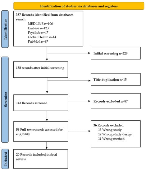 A search of the relevant literature was conducted for this investigation utilising five scientific and medical databases: PubMed, MEDLINE, Embase, PsycINFO, and Global Health through the OVID platform. Several papers discovered in the reference lists of the included studies were also included.
