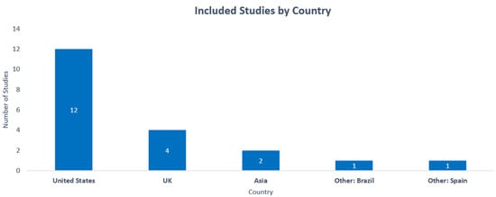 The Figure 3 below depicts the breakdown of studies by country in which they were conducted, with the United States having the most (n = 12).