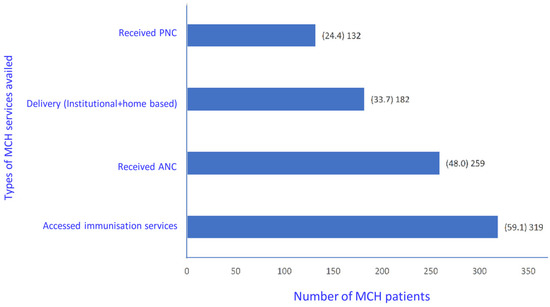 Due to the selection criteria that was followed, patients may have been eligible for accessing more than one service, i.e., antenatal services, delivery care services, postnatal care received by the mother, and immunisation services. The breakup of the patients based on the services availed is provided in Figure 2.