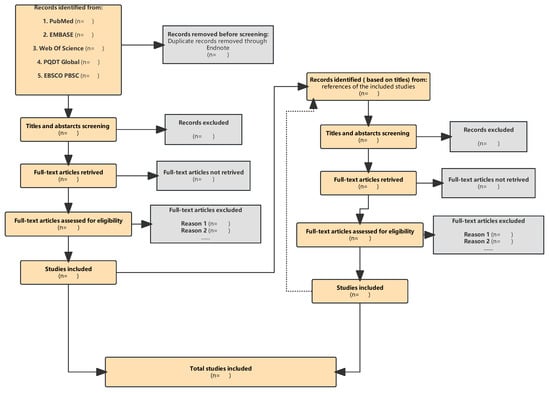 - Page, M.J.; Moher, D.; Bossuyt, P.M.; Boutron, I.; Hoffmann, T.C.; Mulrow, C.D.; Shamseer, L.; Tetzlaff, J.M.; Akl, E.A.; Brennan, S.E.; et al. PRISMA 2020 explanation and elaboration: Updated guidance and exemplars for reporting systematic reviews. BMJ 2021, 372, n160. [Google Scholar] [CrossRef]