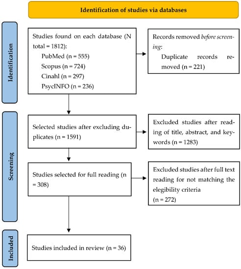 Of the 1812 studies initially identified, 36 were selected as being consistent with the review objective and eligibility criteria (Figure 1).