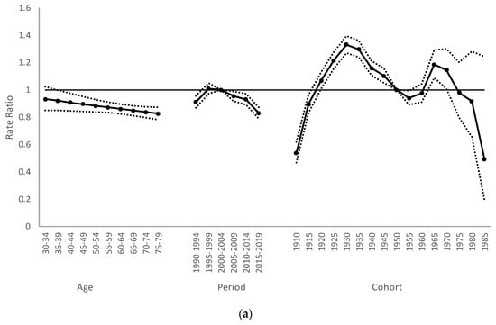 | APC (local drift) | 30–34 year | −1.5973 | −3.6327 | 0.481 | −3.5023 | −5.5998 | −1.3581 |
