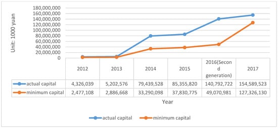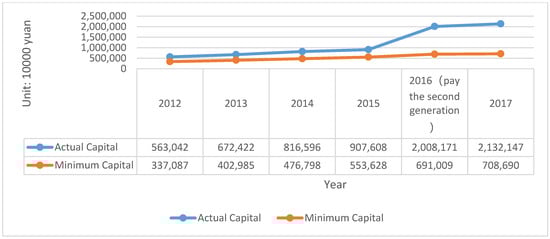 CIC is the second insurance company with legal personality in China. In 2013, the company cooperatively developed the energy-saving income liability insurance. The actual capital and minimum capital of CIC is described in Figure 4.