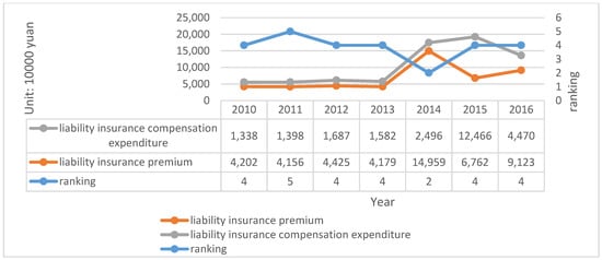 In this section, data from the macro- and micro-levels of the liability insurance category to which the contract energy management insurance belongs are collected, organized, and analyzed. On the macro-level, the data are analyzed from a nationwide perspective. On the micro-level, three large insurance companies that can provide contract energy management insurance are selected and relevant data are collected from their annual reports for analysis.