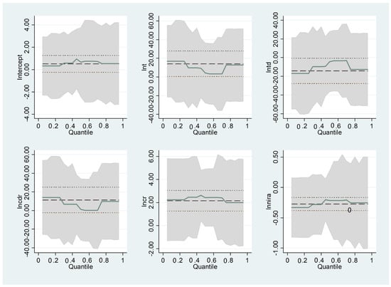 Moreover, we will address the robustness test. Here, we mainly replace the initial regression with the quantile regression method to obtain more effective estimation results. This paper uses the results of quantile number as the regression coefficient, and the regression results are described in Figure 9.