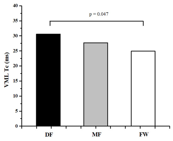 Differences between football players of different playing positions in Tc of VML muscle.