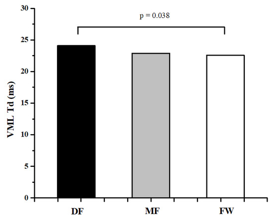 Differences between football players of different playing positions in Td of VML muscle.