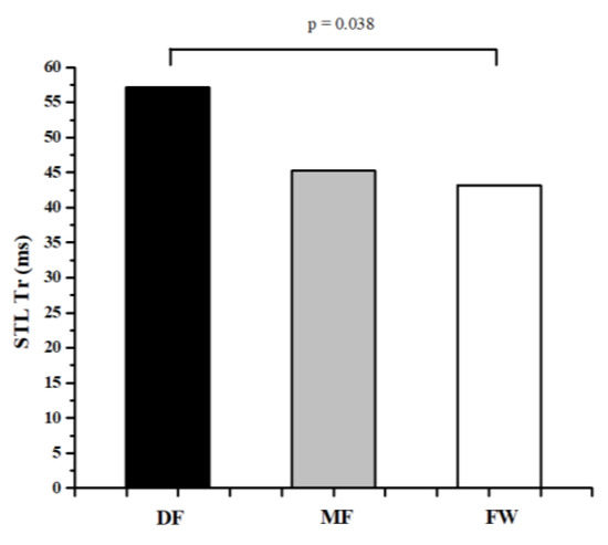Differences between football players of different playing positions in Tr of STL muscle.