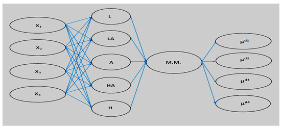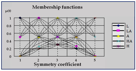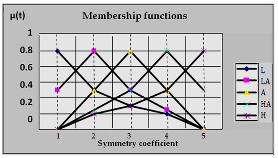Such an approach enables to obtain a clear numerical expression for those criteria, that have descriptive characteristics and, correspondingly, qualitative content, for instance, such characteristics as L—low, LA—lower than average; A—average; HA—higher than average, H—high [29,31] (see Table 4).