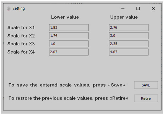 As a result of the implementation of these blocks, a software shell was developed, after starting the program, the user is invited to enter the values of the upper and lower scale of values that are in the database for a certain pathology, which are the main factors for the determination of the degree of anatomical lesion of coronary arteries [34,47,48].