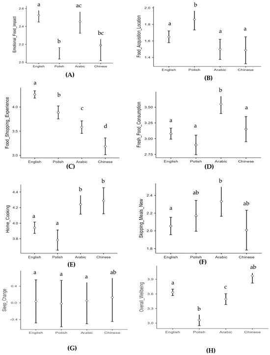 The following supporting information can be downloaded at: https://www.mdpi.com/article/10.3390/ijerph20206941/s1, Refs. [1,20,22,27] are cited in Supplementary Materials. Figure S1: Scree plot indicating Eigenvalues derived from the principal component analysis; Figure S2: Error bar charts containing estimated marginal means (95% CI) for the composite variables by country; Table S1: Composite variable reliability; Table S2: Pattern matrix following an oblique rotation of the UNSCN nutrition questions; Table S3: Results of the ANCOVA analysis examining Emotional Food Impact by country, controlling for age and gender; Table S4: Results of the Tukey adjusted post-hoc comparisons analysis examining Emotional Food Impact by country, controlling for age and gender; Table S5: Results of the ANCOVA analysis examining Food Acquisition Location by country, controlling for age and gender; Table S6: Results of the Tukey adjusted post-hoc comparisons analysis examining Food Acquisition Location by country, controlling for age and gender; Table S7: Results of the ANCOVA analysis examining Food Shopping Experience by country, controlling for age and gender; Table S8: Results of the Tukey adjusted post-hoc comparisons analysis examining Food Shopping Experience by country, controlling for age and gender; Table S9: Results of the ANCOVA analysis examining Fresh Food Consumption by country, controlling for age and gender; Table S10: Results of the Tukey adjusted post-hoc comparisons analysis examining Fresh Food Consumption by country, controlling for age and gender; Table S11: Results of the ANCOVA analysis examining Home Cooking by country, controlling for age and gender; Table S12: Results of the Tukey adjusted post-hoc comparisons analysis examining Fresh Food Consumption by country, controlling for age and gender; Table S13: Results of the ANCOVA analysis examining Skipping Meals by country, controlling for age and gender; Table S14: Results of the Tukey adjusted post-hoc comparisons analysis examining Skipping Meals by country, control-ling for age and gender; Table S15: Results of the ANCOVA analysis examining Consuming Food Reserves by country, controlling for age and gender; Table S16: Results of the ANCOVA analysis examining Overall Well-being by country, controlling for age and gender; Table S17: Results of the Tukey adjusted post-hoc comparisons analysis examining Overall Well-being by country, controlling for age and gender.