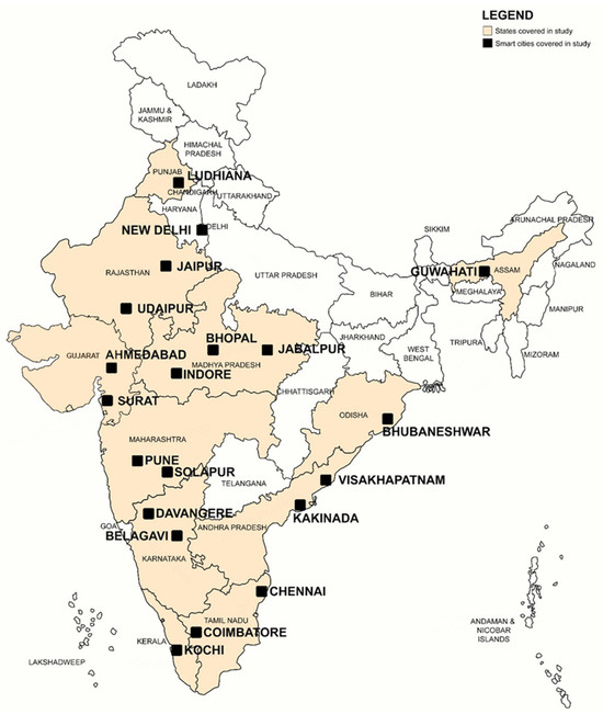 In 2015, the Government of India created the Smart Cities Mission [1], which proposed the development of 100 smart cities to address the challenges of urbanization through smart solutions. This announcement was followed by categorizing the proposed 100 cities into five priority rounds for implementation. Smart city development, via the Smart Cities Mission in India, is broadly categorized as (1) Area-Based Development and (2) Pan City Development. Area-Based Development includes a range of retrofitting, redevelopment, and green-field projects such as major ICT clusters (to enable ‘smart’ employment), housing development (to support the ICT sector), place-making projects (e.g., urban refurbishment using ‘smart furniture’), and infrastructure projects (e.g., smart water and waste management facilities). Pan City Development covers city-wide initiatives that focus on technology-enabled urban management and mainly operates in the form of an Integrated-Command-and-Control-Centre.
