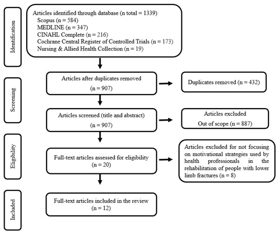 The review included qualitative and quantitative studies focusing on strategies health professionals use to motivate people with lower limb fractures. Approved studies had to be written in English, Portuguese, or Spanish and published between 2003 and 2023.