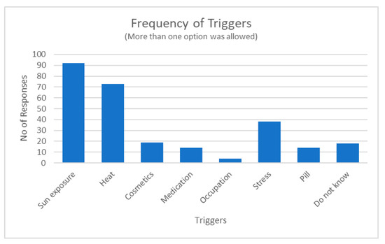 Number of times a trigger category was selected by the respondents.