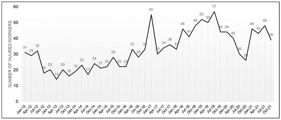 - Ministerio de Trabajo y Seguridad Social. Estadisticas de Accidentes de Trabajo. 2022. Available online: http://www.mitramiss.gob.es/estadisticas/eat (accessed on 1 June 2022).