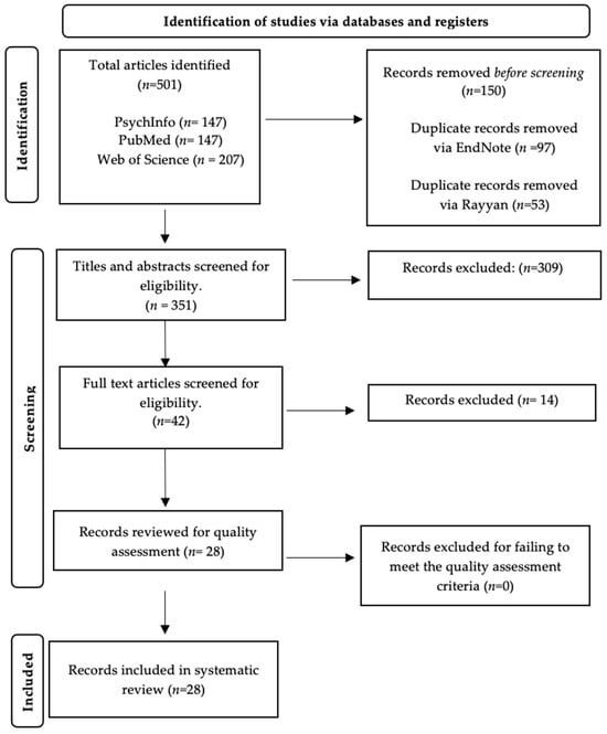 The present systematic review was conducted in line with the Preferred Reporting Items for Systematic Reviews and Meta-Analyses (PRISMA) guidelines [34]. Supplementary Table S1 shows the completed PRISMA checklist for this systematic review. After preliminary scoping searches in March 2023, PsychInfo (Ovid), PubMed, and Web of Science were selected to obtain studies for this review.