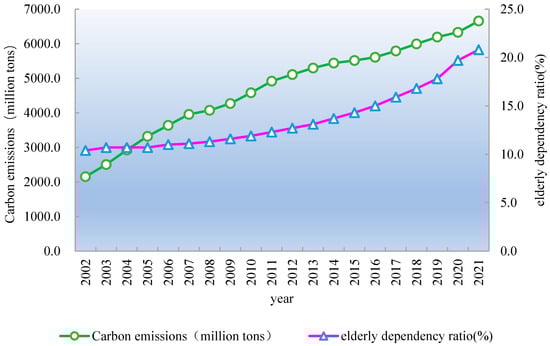 Carbon emissions and elderly population dependency ratio in China, 2002–2021.